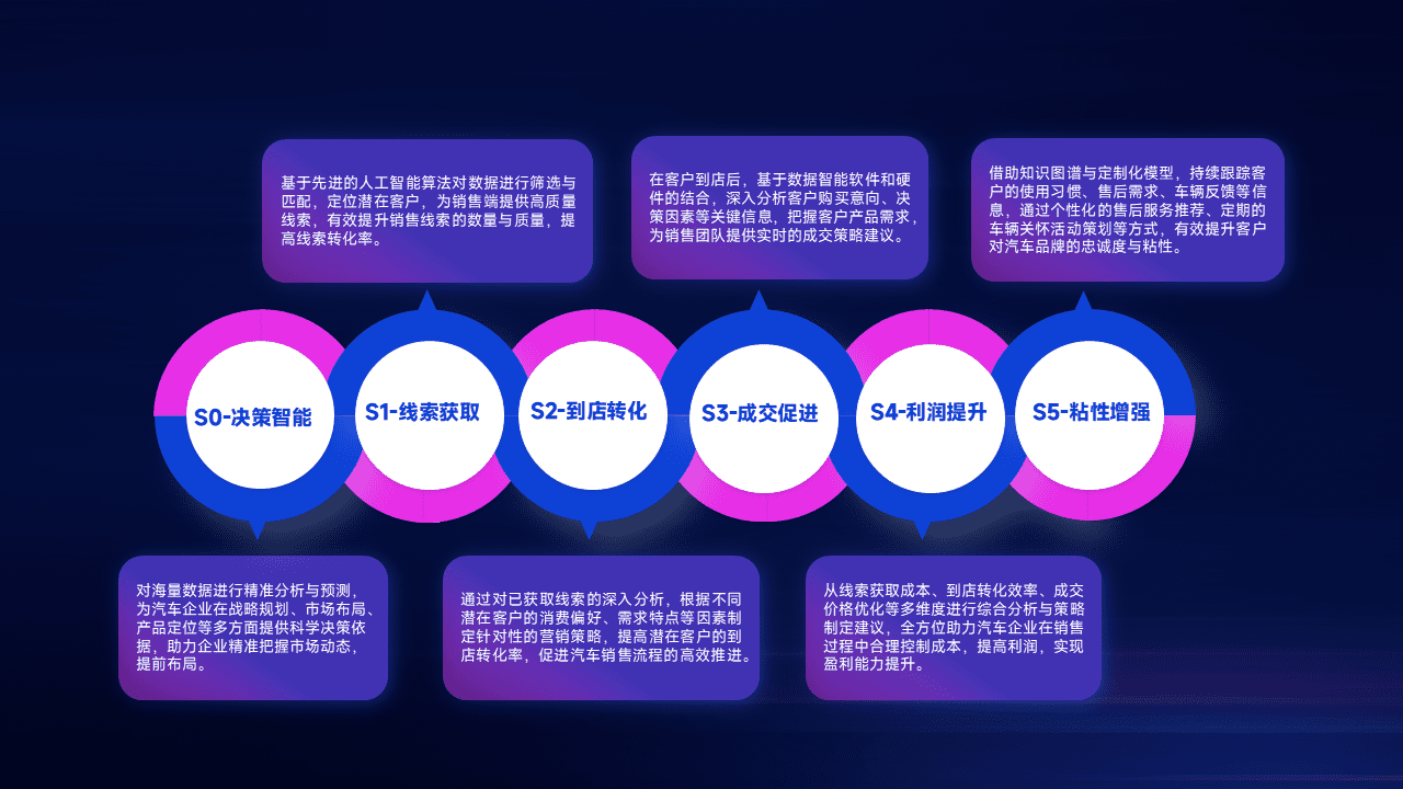 通过拓宽潜在客户来源、、、、优化线索分配并提高到店转化率,,以增强销售效率。。。。同时,,利用线索数据不断优化分析模型,,,有效提升转化率,,,扩大营销影响力。。。